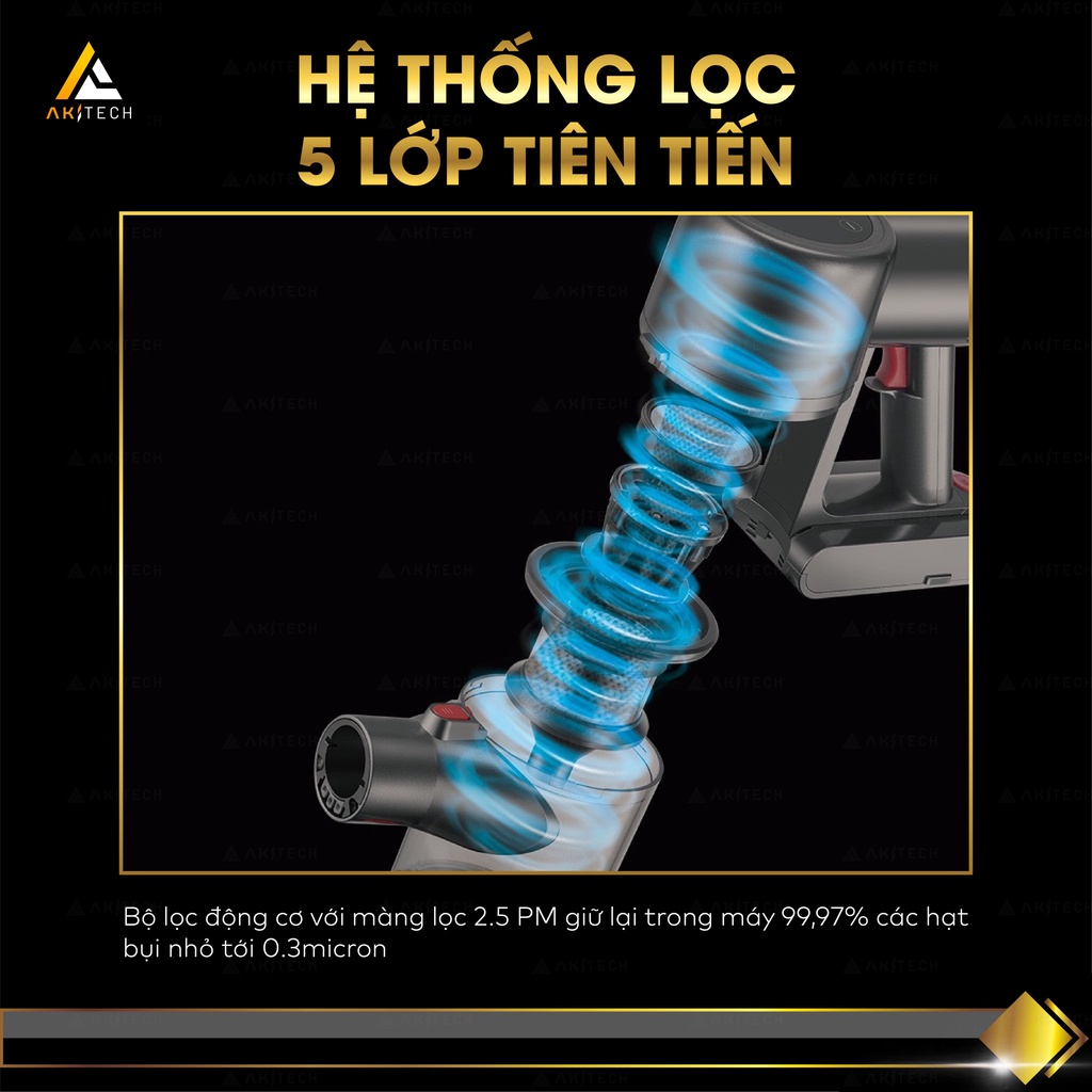Máy hút bụi lau nhà không dây cầm tay AKI SONIC PRO vừa lau vừa hút nhà cửa, giường nệm, xe hơi công suất 21000PA