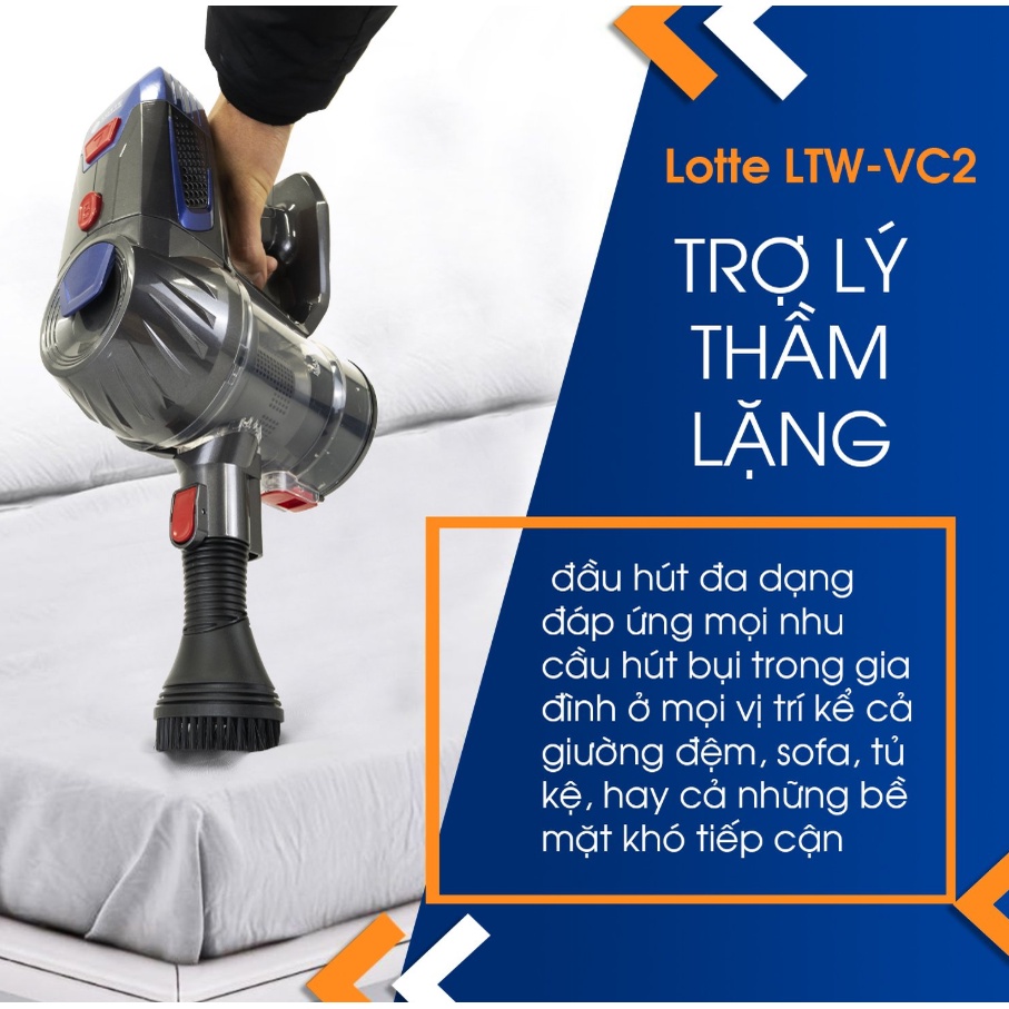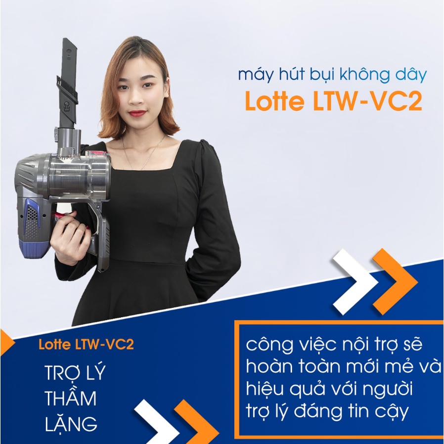 Máy hút bụi không dây 2 trong 1 Lotte_LTW-VC2 là lựa chọn sáng suốt, là trợ thủ đắc lực dành cho các bà nội trợ hiện đại ngày nay.