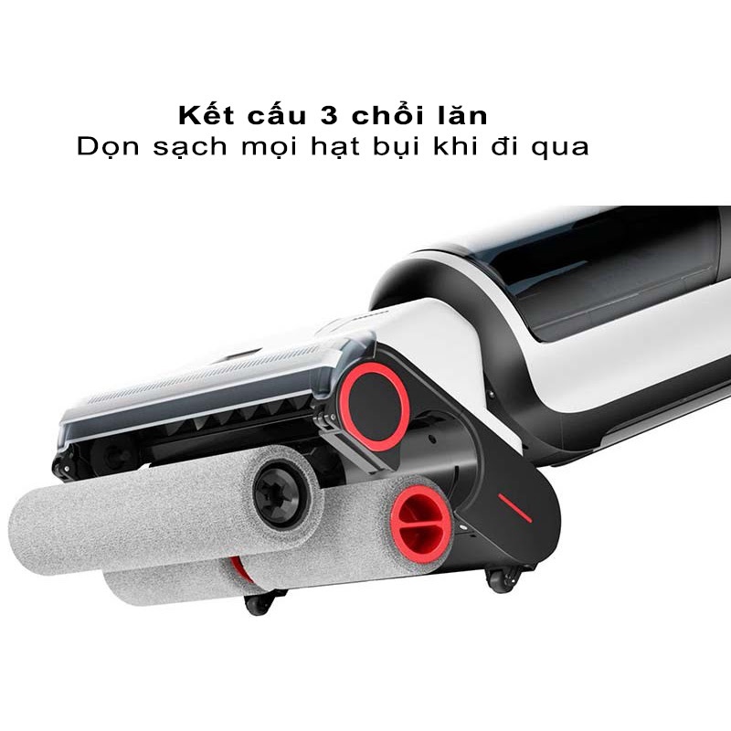 Máy hút bụi Roborock Dyad sở hữu thiết kế 3 chổi lăn xoay với 1 chổi lăn phía trước dài và 2 chổi lăn phía sau quay ngược chiều nhau giúp nó dọn sạch mọi ngóc ngách mà không bỏ sót bất kì bụi bẩn nào. Bên cạnh đó, 2 chổi lăn phía dưới được thiết kế bám sát vào tường, có tác dụng làm sạch mọi vị trí trong nhà một cách hiệu quả nhất.