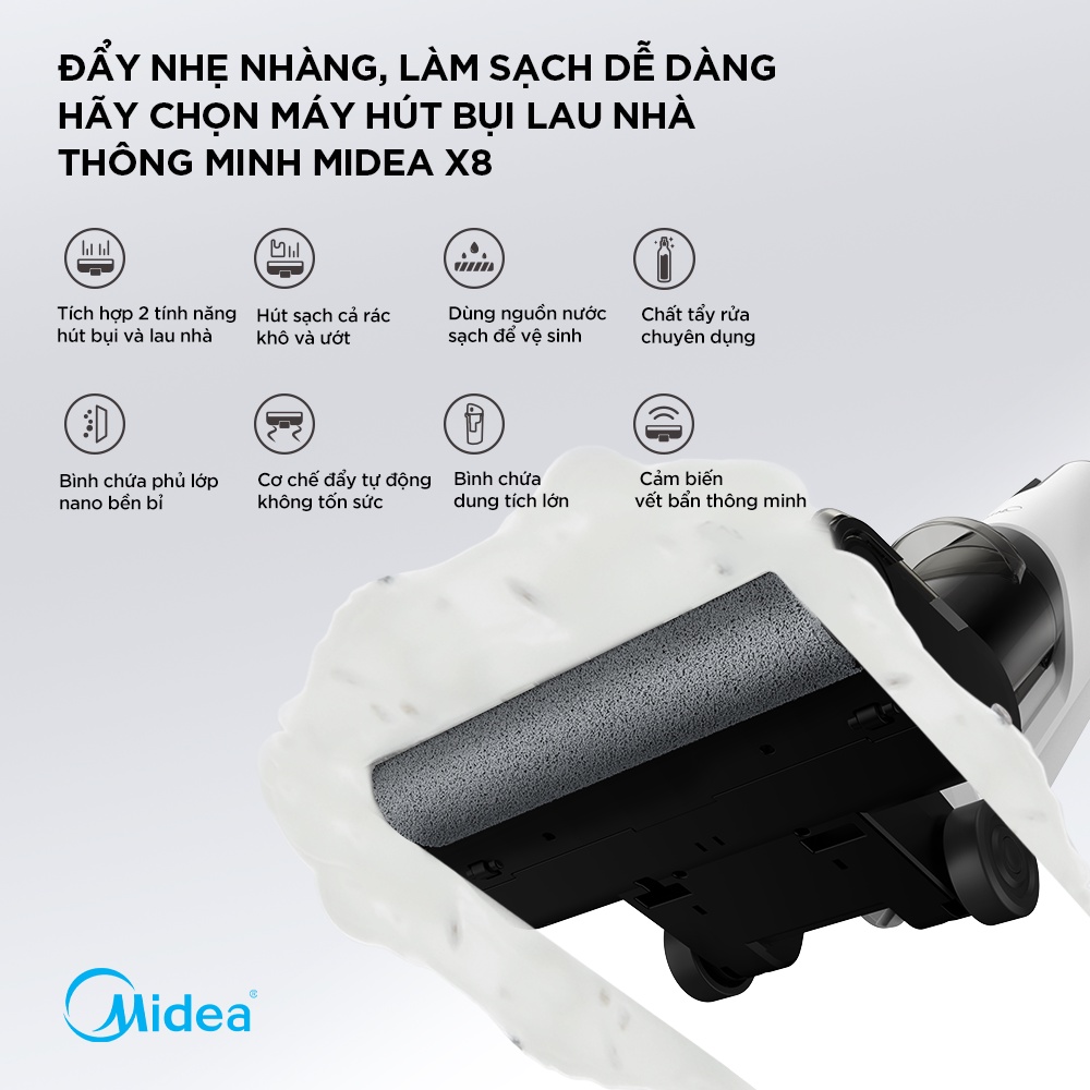 Máy hút bụi lau sàn thông minh 3 trong 1 MIDEA X8 150W - Hàng chính hãng bảo hành điện tử 1 năm