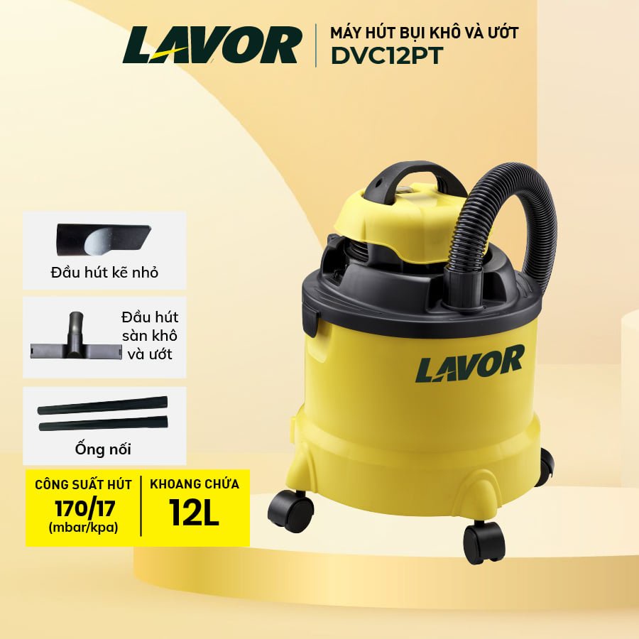 Máy hút bụi Lavor DVC12PT, hút bụi khô và ướt cùng lúc, mạnh mẽ tiết kiện điện năng, Bảo hành chính hãng 12 tháng