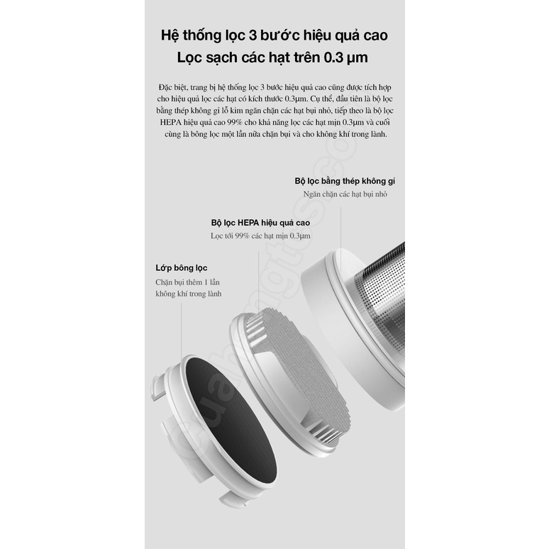 🍀 Hệ thống 3 lớp lọc hiệu quả các hạt bụi kích thước trên 0.3µm:
