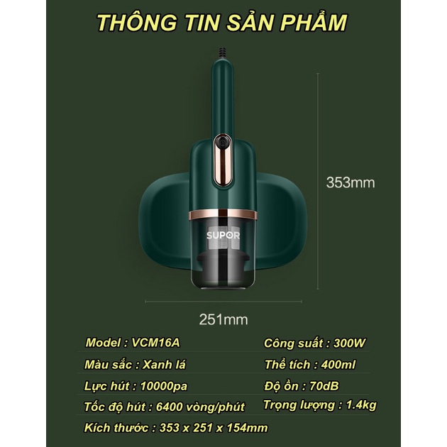 Giới thiệu Máy Hút Bụi Mịn SUPOR VCM16A Đa Chức Năng Có Đèn Tia UV Sát Khuẩn Diệt Bọ Li Ti - Home and Garden