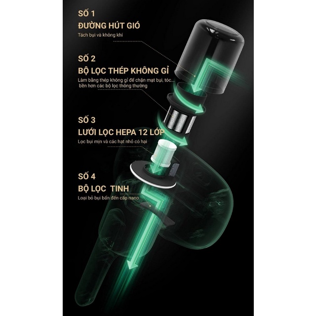 - Lực hút của máy hút bụi cầm tay mini này lên đến 10kpA.