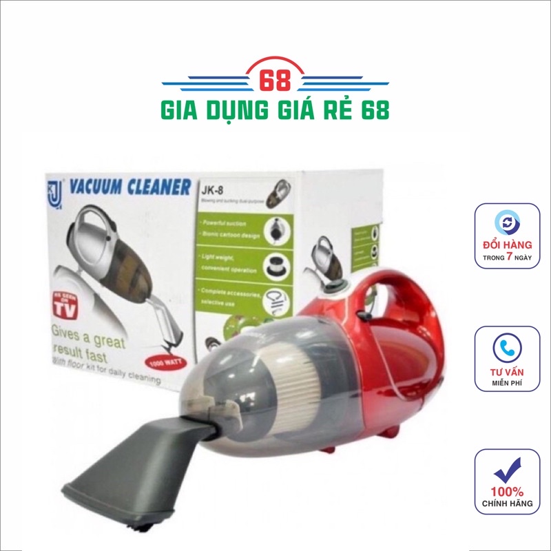 Máy Hút Bụi 2 Chiều Mini Vacuum Cleaner JK-8 lau dọn nhà cửa mỗi ngày là một trong những cách giúp bạn bảo vệ sức khỏe bản thân, gia đình cũng như giữ cho đồ đạc, không gian sống của mình luôn được sạch sẽ. Nhưng không phải ai cũng có thể dành thời gian và công sức để lau chùi một cách thủ công. Nếu bạn muốn công việc dọn dẹp nhà cửa của mình diễn ra nhanh chóng, nhẹ nhàng hơn mà chưa đủ điều kiện mua những máy hút bụi cỡ lớn thì hãy để Shoptuancua.com giúp đỡ bạn. Với chiếc máy hút bụi Vacuum Cleaner JK-8 mà Shop Tuan Cua mang đến lần này, công việc dọn dẹp nhà cửa của bạn trở nên dễ dàng hơn bao giờ hết.Máy hút bụi Vacuum Cleaner JK-8 thiết kế ấn tượng với kích thước và trọng lượng gọn nhẹ. Nhưng không vì thế mà máy kém hiệu quả. Với công nghệ lọc bụi 4 lớp và công suất 1.000W, kết hợp với nhiều dạng đầu hút khác nhau giúp bạn nhanh chóng hút mọi bụi bẩn ở mọi không gian, ngay cả những khe nhỏ. Máy có hai chức năng hút bụi và thổi nên cực kỳ tiện dụng.