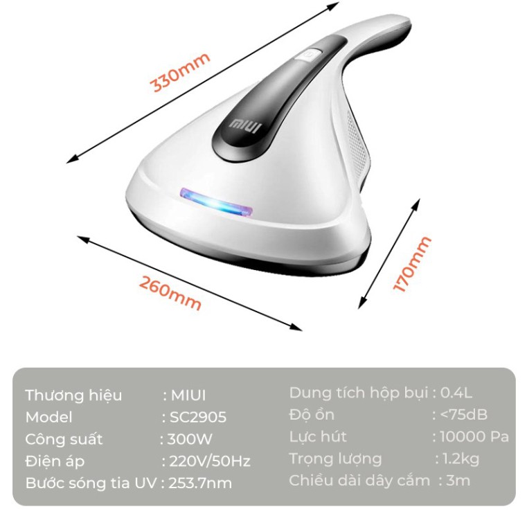 Máy Hút Bụi Khử Khuẩn & Vệ Sinh Giường Nệm Cầm Tay MIUI SC 2905 Thông số kỹ thuật: