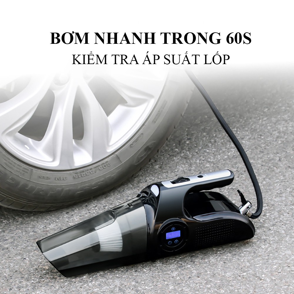 - Thiết kế 2 IN 1 đa năng với 4 công năng: hút bụi, bơm xe, kiểm tra áp suất lốp, soi đèn dành cho gia đình & xe hơi