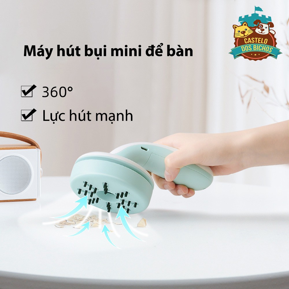 Máy hút bụi mini cầm tay, hút lông chó mèo tiện dụng trong văn phòng, oto, gia đình, tặng kèm đầu hút nhỏ và chổi quét