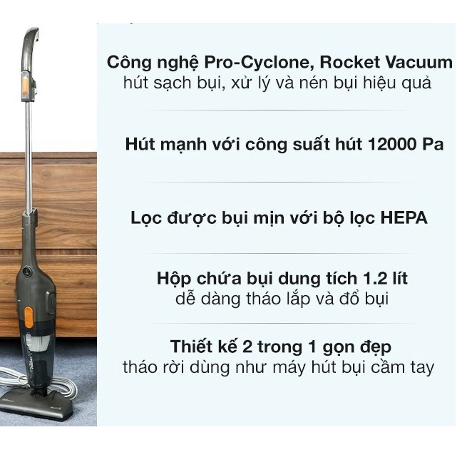 - Công nghệ hút xoáy Pro-Cyclone, Rocket Vacuum tăng hiệu quả hút bụi, bảo vệ tốt cho bộ lọc