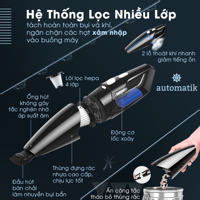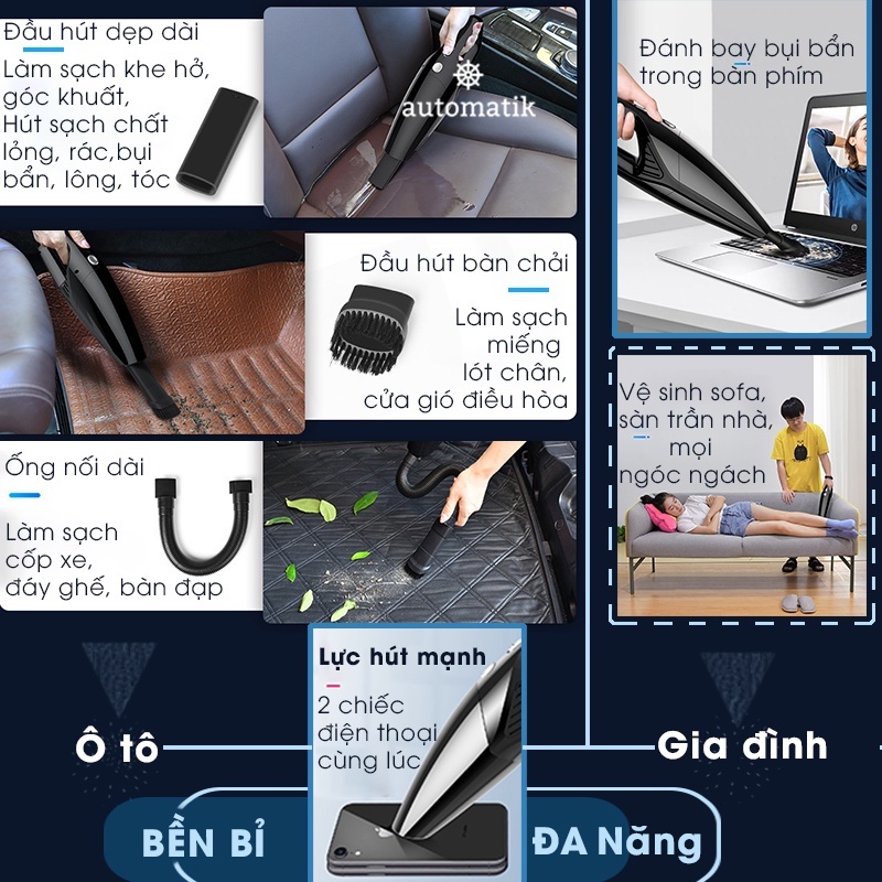 Hút sạch bụi bẩn tại mọi vị trí, ngóc ngách cho xe hơi cũng như căn nhà