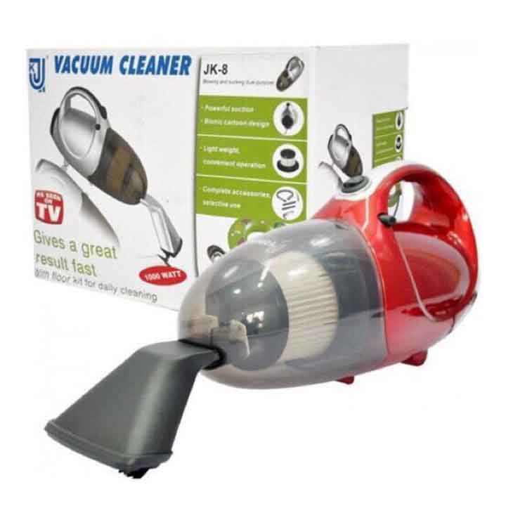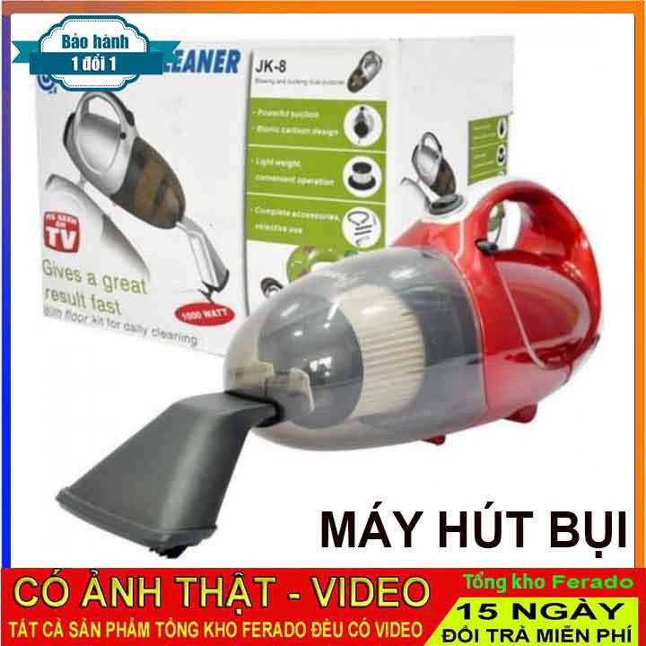 Máy Hút Bụi 2 Chiều Mini Vacuum Cleaner JK-8 lau dọn nhà cửa mỗi ngày là một trong những cách giúp bạn bảo vệ sức khỏe bản thân, gia đình cũng như giữ cho đồ đạc, không gian sống của mình luôn được sạch sẽ. Nhưng không phải ai cũng có thể dành thời gian và công sức để lau chùi một cách thủ công. Nếu bạn muốn công việc dọn dẹp nhà cửa của mình diễn ra nhanh chóng, nhẹ nhàng hơn mà chưa đủ điều kiện mua những máy hút bụi cỡ lớn thì hãy để Tổng kho ferado giúp đỡ bạn. Với chiếc máy hút bụi Vacuum Cleaner JK-8 mà Tổng kho ferado mang đến lần này, công việc dọn dẹp nhà cửa của bạn trở nên dễ dàng hơn bao giờ hết.Máy hút bụi Vacuum Cleaner JK-8 thiết kế ấn tượng với kích thước và trọng lượng gọn nhẹ. Nhưng không vì thế mà máy kém hiệu quả. Với công nghệ lọc bụi 4 lớp và công suất 1.000W, kết hợp với nhiều dạng đầu hút khác nhau giúp bạn nhanh chóng hút mọi bụi bẩn ở mọi không gian, ngay cả những khe nhỏ. Máy có hai chức năng hút bụi và thổi nên cực kỳ tiện dụng.
