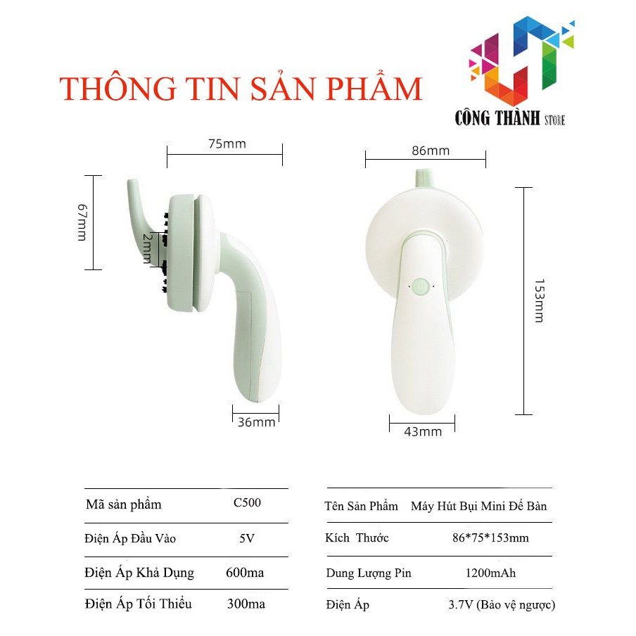 Thân máy nhỏ & công suất lớn-Mặc dù có kích thước nhỏ, nó có lực hút mạnh và có thể dễ dàng làm sạch bụi và bụi giấy trên bàn hoặc ngăn kéo. Bạn cũng có thể sử dụng nó để làm sạch các vật nhỏ.