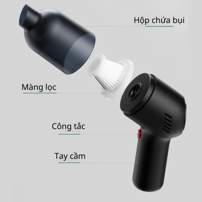 - Máy hút sử dụng pin, không cần cắm điện, hút được mọi nơi, dễ dàng vệ sinh,giúp bạn tiết kiệm thời gian và sức lực.