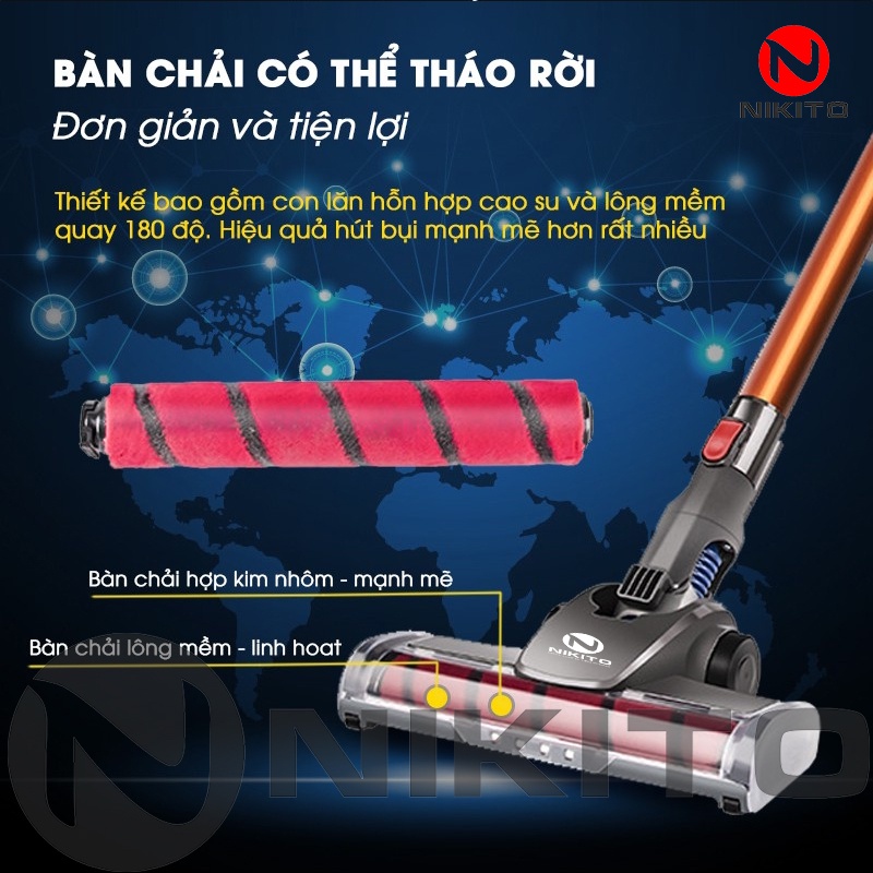 Hút Bụi Cầm Tay Không Dây NIKITO Lau Siêu Sạch Pin Bền Tặng Kèm Giá Treo Máy Sang Trọng Tiện DụngKhác với nhiều loại máy hút bụi khác Máy hút bụi cầm tay không dây 3 trong 1 NIKITO – Hút khỏe sạch hết các loại bui kể cả bụi mịn.