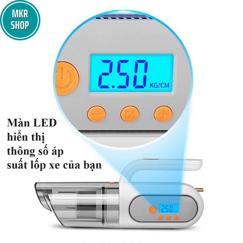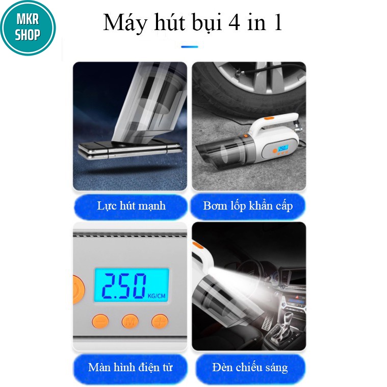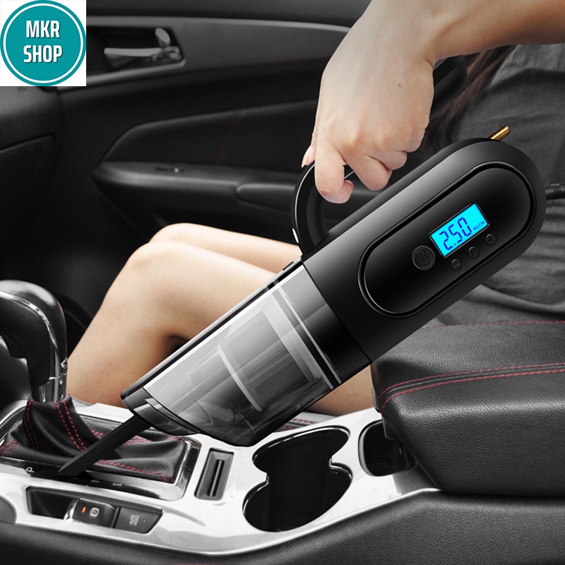Máy Hút Bụi ô Tô 4 in 1 Kiêm Bơm Lốp - Hút Bụi Mini Cầm Tay Lực Hút Mạnh + bơm hơi ô tô màn hình kỹ thuật số