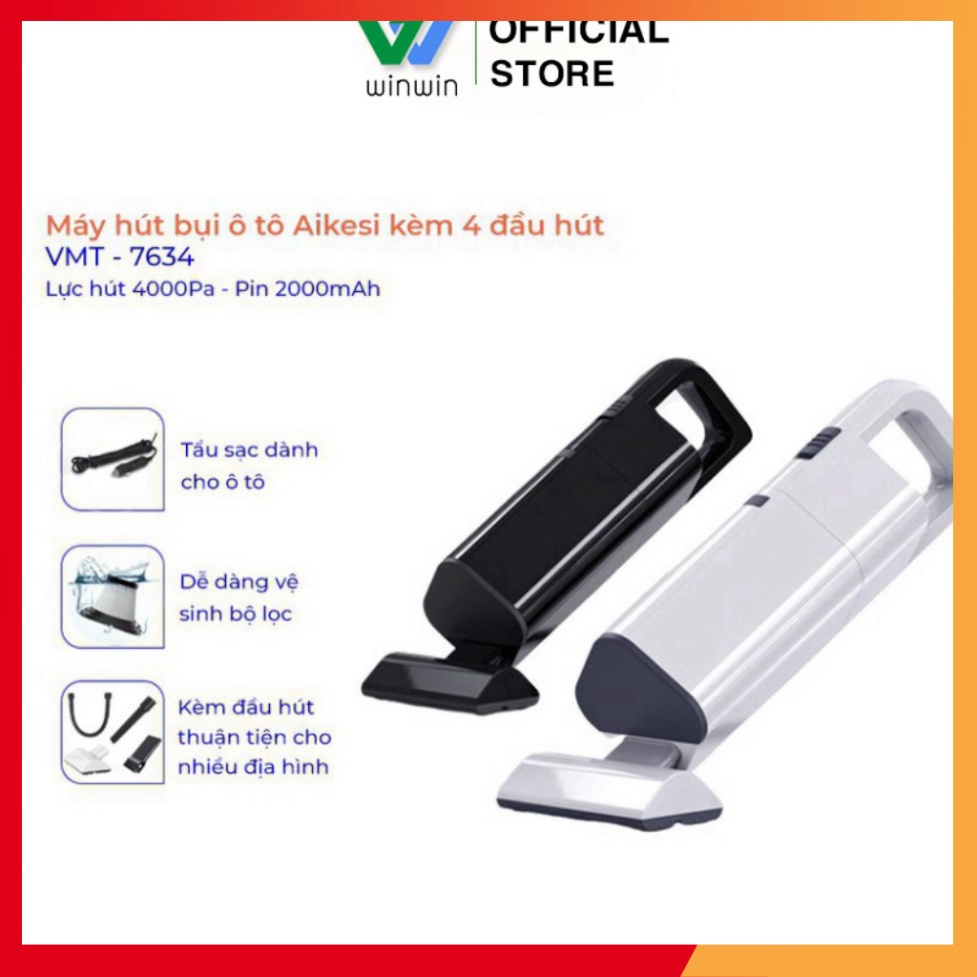 Máy hút bụi ô tô Aikesi [Sẵn Hàng] máy hút bụi cầm tay chính hãng lực hút 4000Pa Kèm 4 đầu hút_VimartTHÔNG TIN SẢN PHẨM