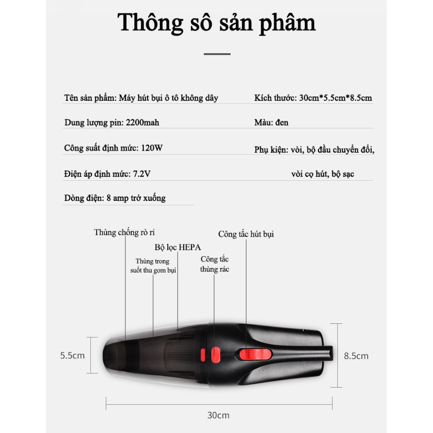 Máy hút bụi ô tô không dây siêu mạnh sử dụng cả ướt và khôĐẶC ĐIỂM NỔI BẬT :
