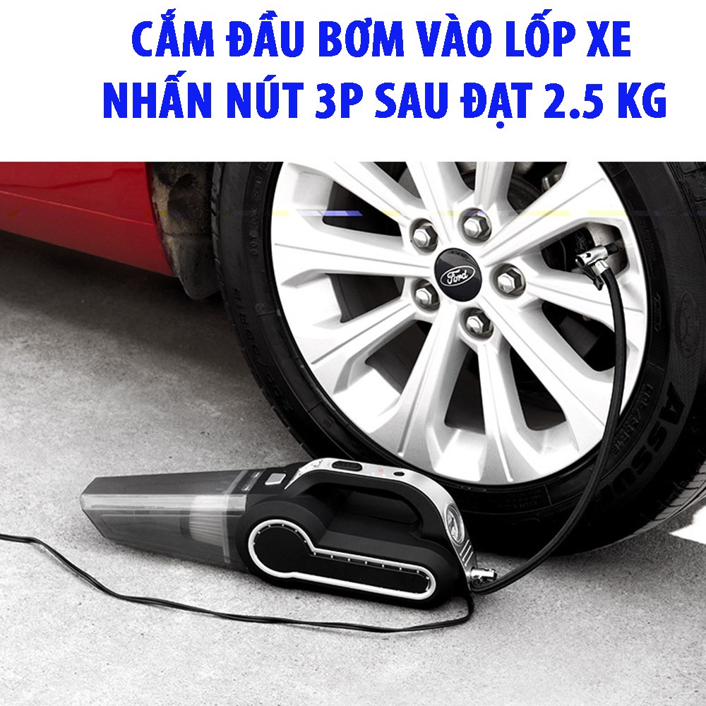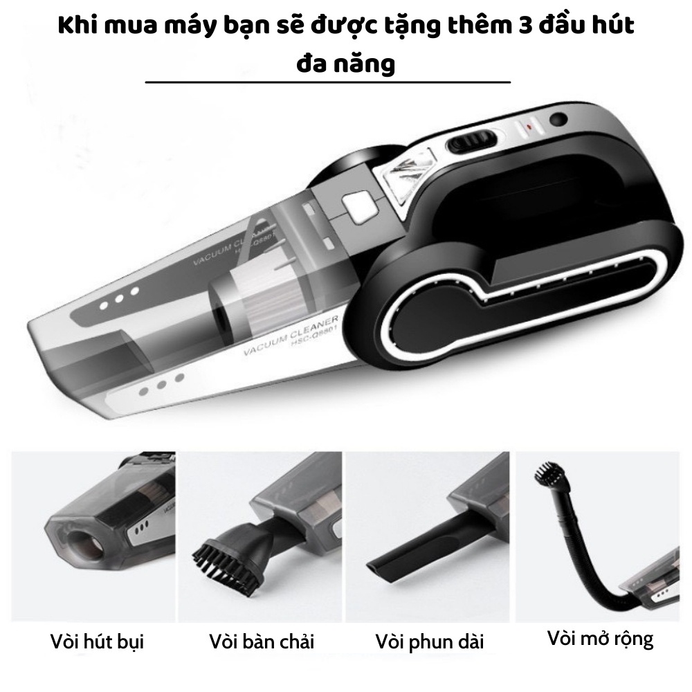 Máy Hút Bụi Ô Tô - Máy Bơm Lốp Ô Tô Đa Năng 4 Trong 1 - Hút Bụi, Bơm Lốp, Đo Áp Suất Lốp, Đèn Pin Chiếu Sáng