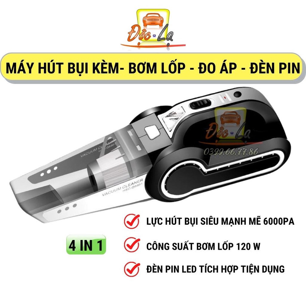 Máy Hút Bụi Ô Tô - Máy Bơm Lốp Ô Tô Đa Năng 4 Trong 1 - Hút Bụi, Bơm Lốp, Đo Áp Suất Lốp, Đèn Pin Chiếu Sáng