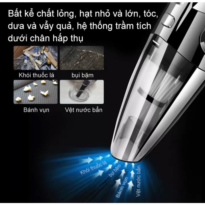 Máy Hút Bụi Ô Tô Mini, Máy Hút Bụi Cầm Tay Sạc Usb Hút Bụi Xe Hơi Công Xuất 120W Làm Sạch Mọi Loại Bụi Khi Khô Và Ướt