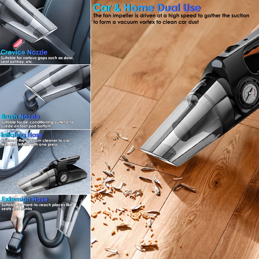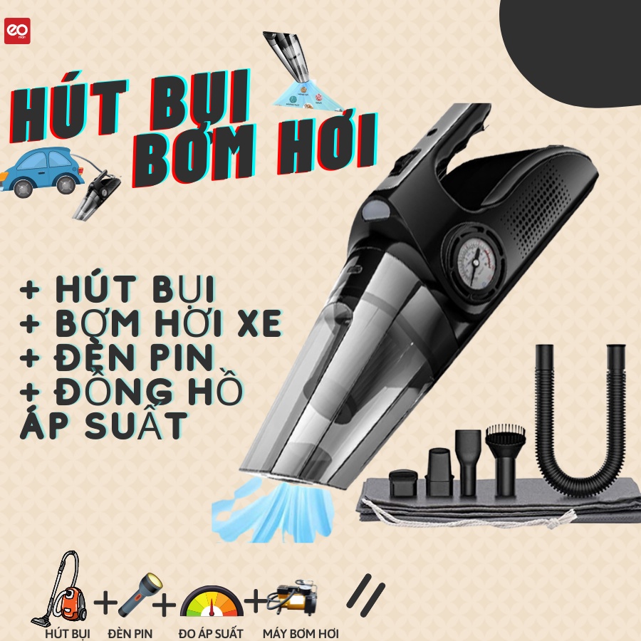 Máy hút bụi oto đa năng, máy hút bụi cầm tay, bơm hơi và kiểm tra áp suất lốp - Bảo hành