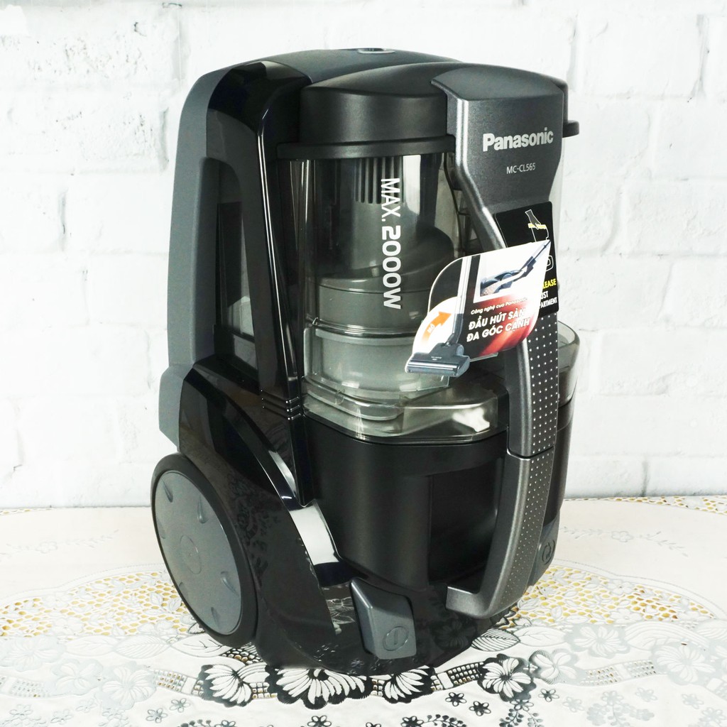 - Máy hút bụi Panasonic MC-CL565KN46 2000W kiểu dáng hiện đại, kích cỡ gọn nhẹ, di chuyển thuận tiện với bánh xe và quai xách- Sản phẩm còn trang bị thanh cầm cong giúp bạn di chuyển ống hút, đầu hút linh hoạt, làm sạch nhà cửa dễ dàng.