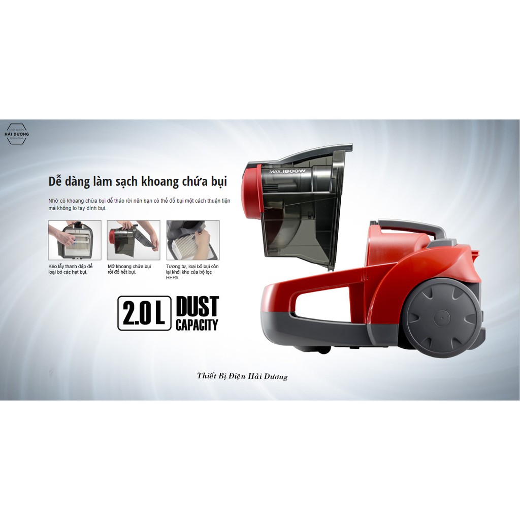 Dung tích khoang chứa bụi lớn 2L dễ dàng vệ sinh