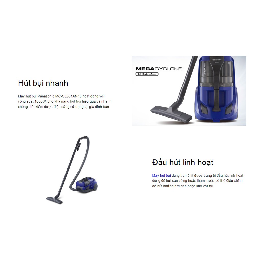 Thiết Bị Điện Gia Dụng > Thiết bị điện gia dụng nhỏ > Máy hút bụi & Thiết bị làm sạch sàn || [Mã 44ELSALE2 giảm 7% đơn 300K] Máy hút bụi Panasonic MC-CL561AN46Còn hàng