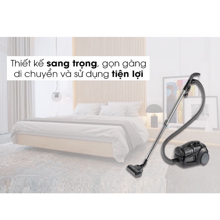 - Máy hút bụi Panasonicmàu xám đen sang trọng, kiểu dáng gọn chắc, dễ dàng di chuyển đến mọi vị trí trong nhà
