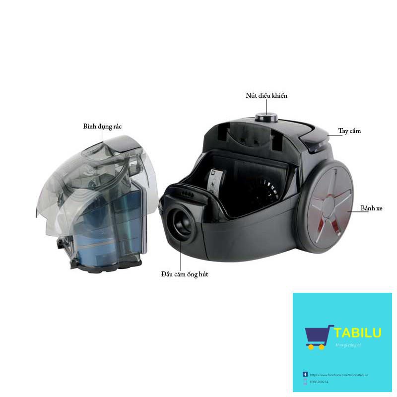 - Máy hút bụi gia đình trang bị ngăn chứa bụi dung tích 1.1 lít cho thời gian hút kéo dài, tránh phải đổ bụi nhiều lần. Máy hút bụi không sử dụng túi nên không mất công vệ sinh túi chứa bụi, tiết kiệm chi phí.
