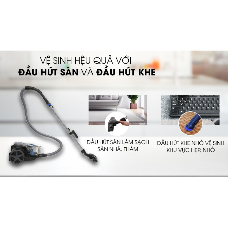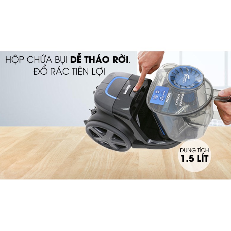 • Dung tích chứa bụi 1.5L thoải mái dọn dẹp