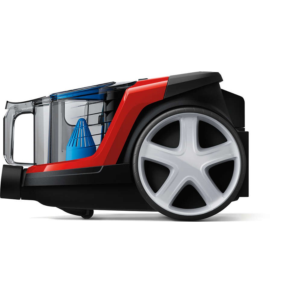 Máy Hút Bụi Philips FC9351 với thân máy mang màu đỏ, kiểu dáng nhỏ gọn sẽ giúp cho không gian căn bếp nhà bạn thêm sang trọng, hiện đại. Sản phẩm mang kiểu dáng của máy hút bụi truyền thống nhưng nhỏ gọn hơn. Ống thu gọn 2 phần bằng kim loại, có thể hoạt động trong bán kính 9m. Đồng thời, được trang bị 2 bánh xe cao su lớn để thuận tiện cho việc di chuyển khắp nơi trong căn nhà.