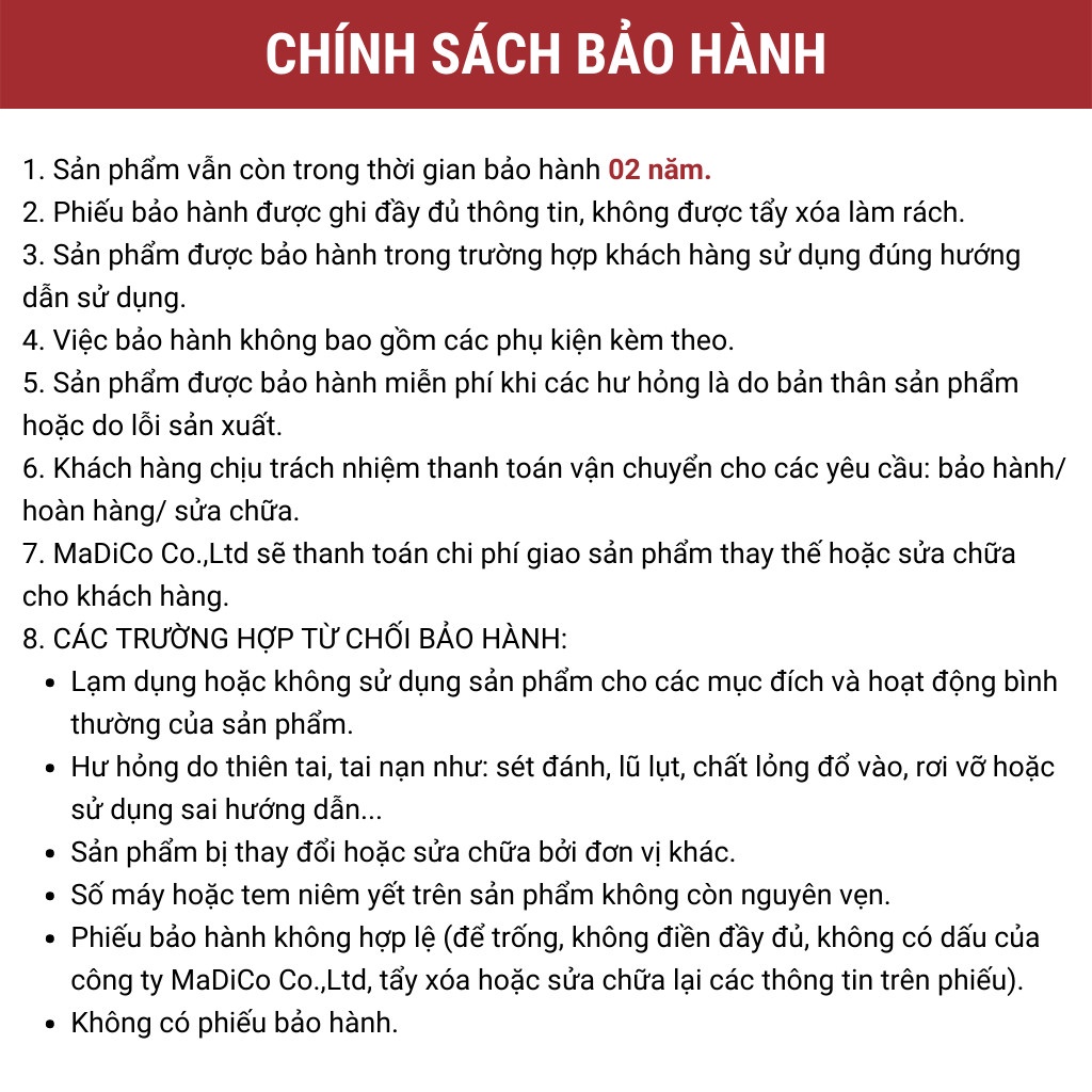 - Thời hạn bảo hành: 24 tháng về máy, 1 đổi 1 trong tuần đầu nếu có lỗi từ nhà sản xuất.