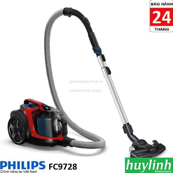 Máy hút bụi Philips FC9728 với công nghệ PowerCyclone 8 và đầu hút TriActive giúp hút bụi rất tốt cho các loại sàn.Huy Linh phân phối và bảo hành chính hãng tại Philips Việt Nam – CAM KẾT