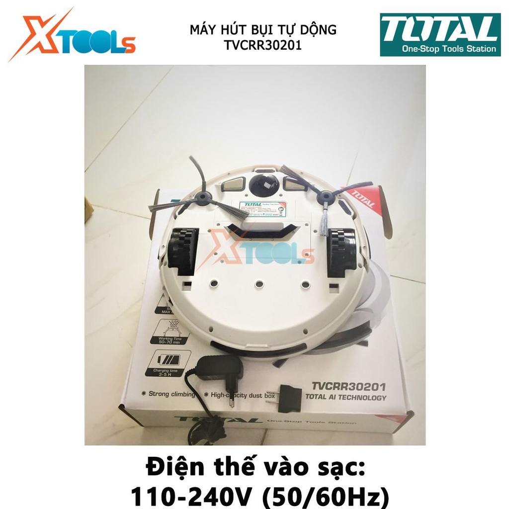 - Robot hút bụi dùng pin Total TVCRR30201 với cơ chế hoạt động tự động, sử dụng 2 chổi quét ở phía trước và lòng hút bụi dưới bụng máy để quét sạch các bụi bẩn dính trên sàn nhà. Robot di chuyển linh hoạt giữ đảm bảo ngôi nhà bạn luôn sạch sẽ