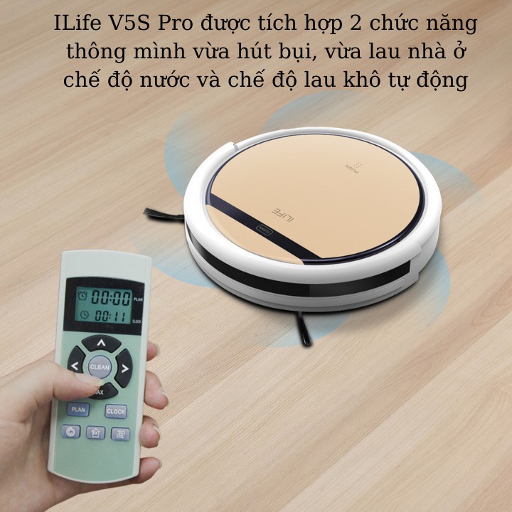 ILife V5S Pro được tích hợp 2 chức năng thông mình vừa hút bụi, vừa lau nhà ở chế độ nước và chế độ lau khô tự động