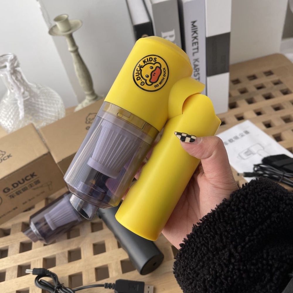 Máy Hút Bụi Vịt Vàng Mini Cầm Tay Không Dây Gduck sạc tích điện công suất 120W hút bụi giường, ô tô lực hút 9000PAMáy hút bụi ô tô không dây cầm tay với khả năng hút sạch mạnh, có thể làm sạch lông vật nuôi, mảnh vụn giấy, nhà bếp, phòng khách và văn phòng.