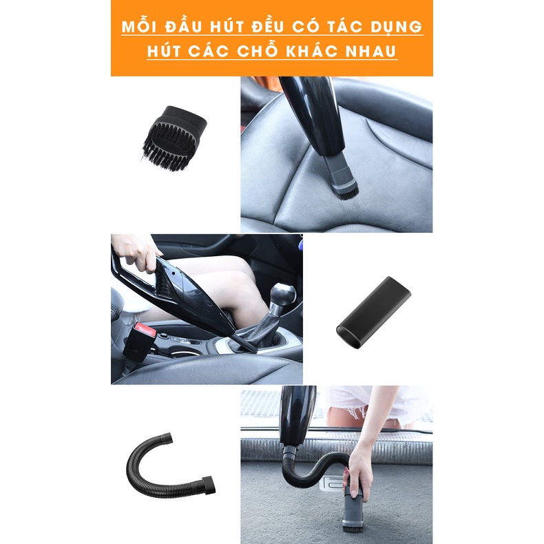 -Với 3 đầu đi kèm với công dụng khác nhau như hút ghế, sạch bụi bẩn tại mọi vị trí, ngóc ngách cho xe hơi