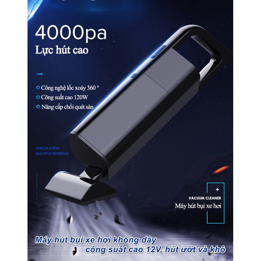 - Tên sản phẩm : Máy hút bụi xe hơi không dây công suất cao 12V, hút ướt và khô