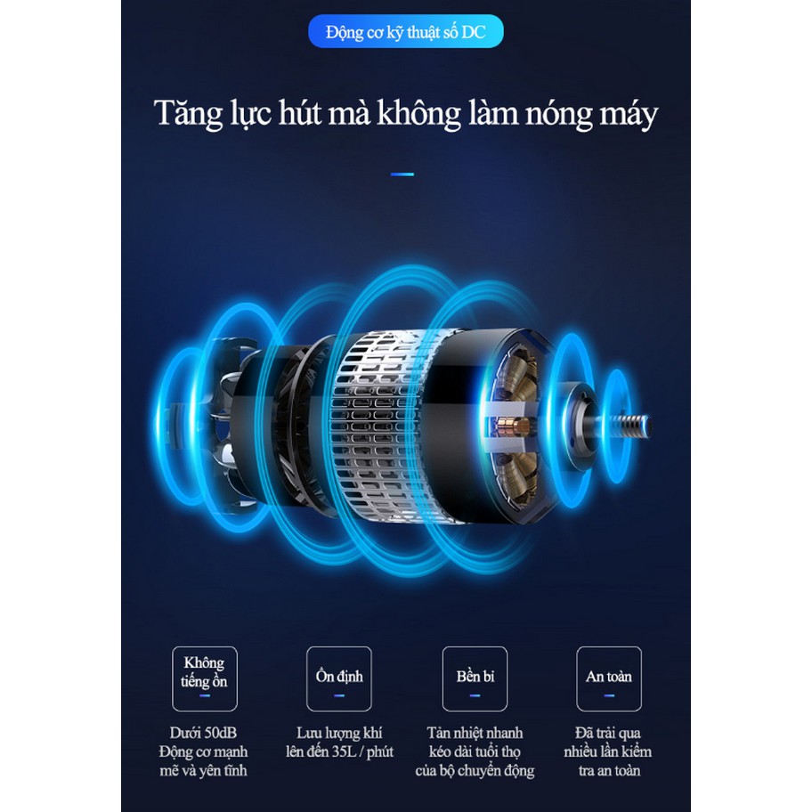 - Động cơ mạnh mẽ và yên tĩnh độ ồn dưới 50dB