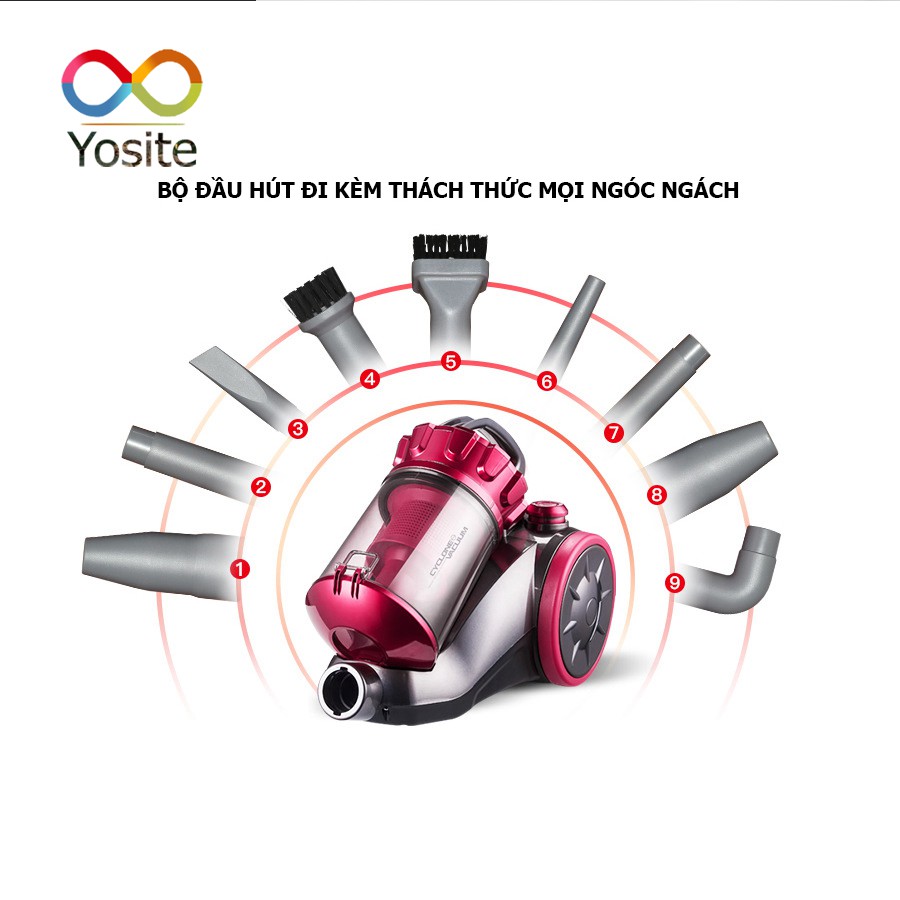 Máy hút bụi Yangzi XC87 công suất 1400W lực hút 17kPa hút sạch bụi bẩn trên mọi địa hình tặng 9 đầu hút