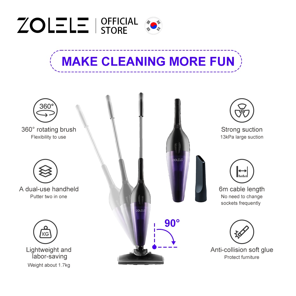 ● Máy hút bụi cầm tay ZOLELE là loại máy công suất lớn, có nhiều kiểu dáng và chức năng, khả năng hút bão cao có thể hút sạch