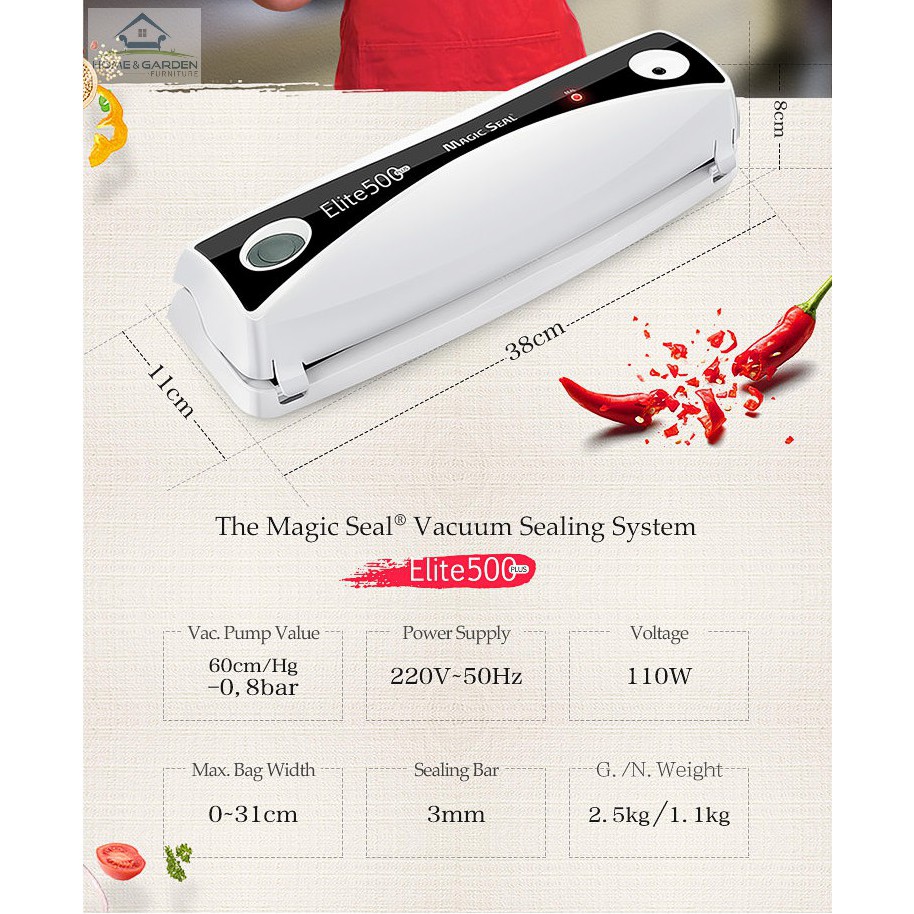 Máy hút chân không bảo quản thực phẩm Elite500 Plus - Home and Garden