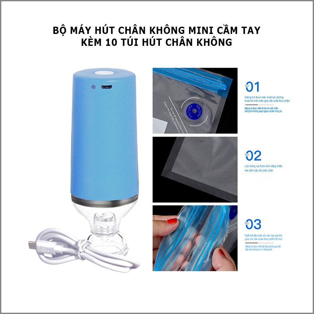 Máy hút chân không nén tự động mini Máy bơm không khí điện + Túi bảo quản thực phẩm 5X