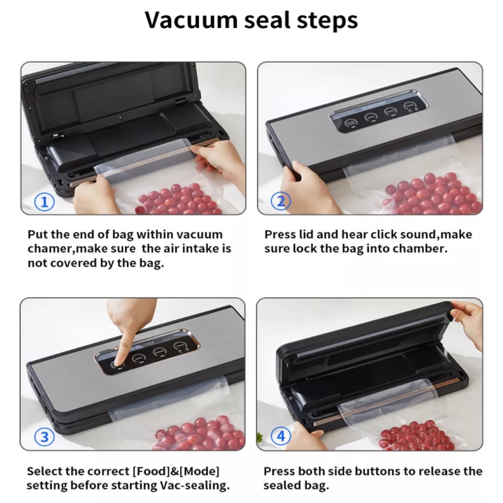 - Hữu ích và thiết thực, máy hút Elekchef sử dụng hệ thống khéo léo được thiết kế để sở hữu hai lựa chọn chế độ hút chân không thực phẩm của bạn với hiệu năng tốt nhất có thể bảo quản dựa trên các loại thực phẩm bạn muốn để bảo quản. Bạn có thể chọn chế độ Dry (Hút đồ khô như chè, gạo, hạt điều, cà phê, ngũ cốc,..) cho thực phẩm rắn các mặt hàng và chế độ Wet (Đồ ẩm, ướt như thịt, cá, hải sản,…). Tích hợp hệ thống chốt khóa 2 bên chắc chắn, ngăn không cho không khí lọt vào bên trong.