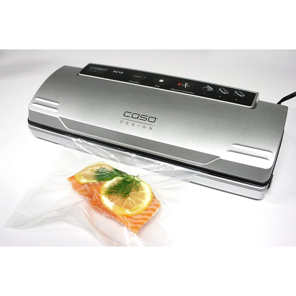 - Không chỉ đơn giản là hút chân không mà Caso VC10 còn đem lại sự ưu việt khi sử dụng đồng thời chế độ hàn miệng túi và hút chân không.
