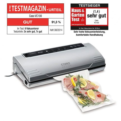 - Một máy VC 100 đi kèm với 10 túi nilon chuyên nghiệp Caso và một ống chân không cho các loại hộp chứa (tùy chọn). Vì vậy, bạn có thể bắt đầu ngay.