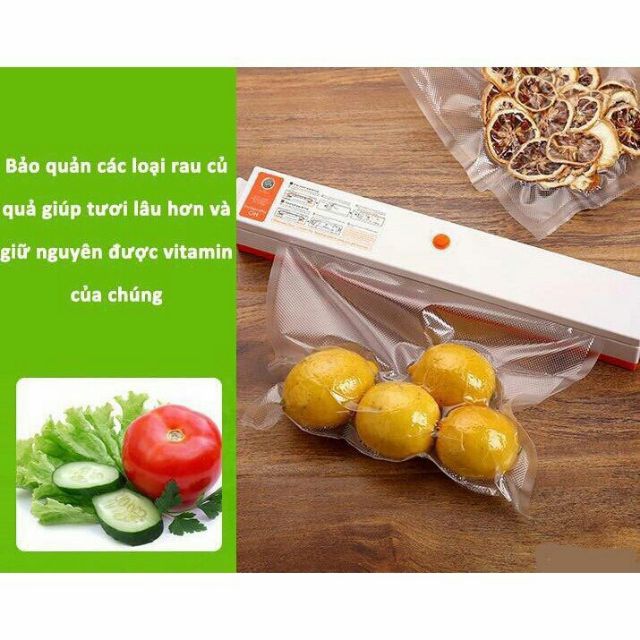 Máy hút chân không cho túi đựng thực phẩmBộ sản phẩm gồm 1 máy và kèm thêm 15 túi hút chân không
