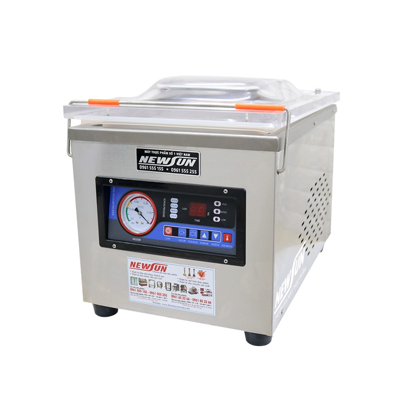 - Máy trang bị động cơ công suất 250W, cho áp suất chân không tối đa 1.32 Kpa. Do đó, máy có thể hút kiệt tới 99% không khí một cách nhanh chóng, đảm bảo sản phẩm bảo quản trong túi ở trạng thái chân không tuyệt đối, hạn chế vi khuẩn, nấm mốc xâm nhập làm chậm quá trình oxi hóa, kéo dài thời gian sử dụng.