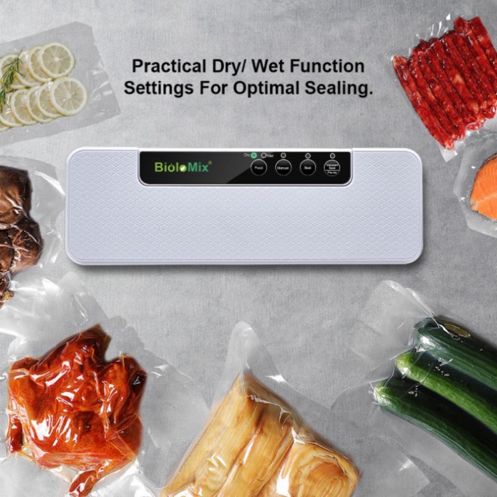 - Hữu ích và thiết thực, máy hút Biolomix sử dụng hệ thống khéo léo được thiết kế để sở hữu hai lựa chọn chế độ hút chân không thực phẩm của bạn với hiệu năng tốt nhất có thể bảo quản dựa trên các loại thực phẩm bạn muốn để bảo quản. Bạn có thể chọn chế độ Dry (Hút đồ khô) cho thực phẩm rắn các mặt hàng và chế độ Wet (Đồ ẩm, ướt)